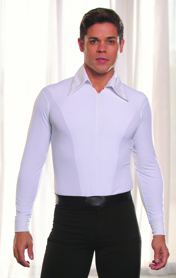 Mens Simple Ballroom Shirt with Full Zipper Closure and Built in Trunks.