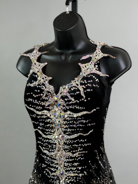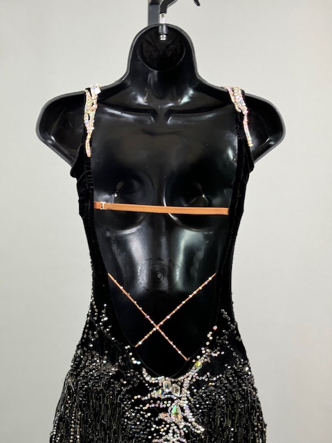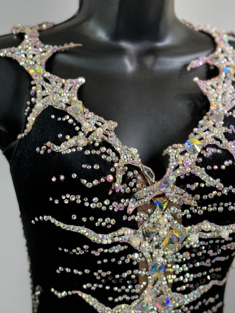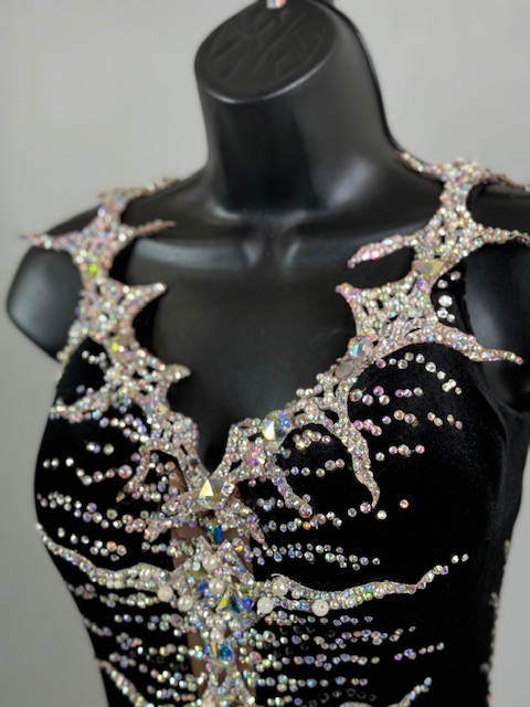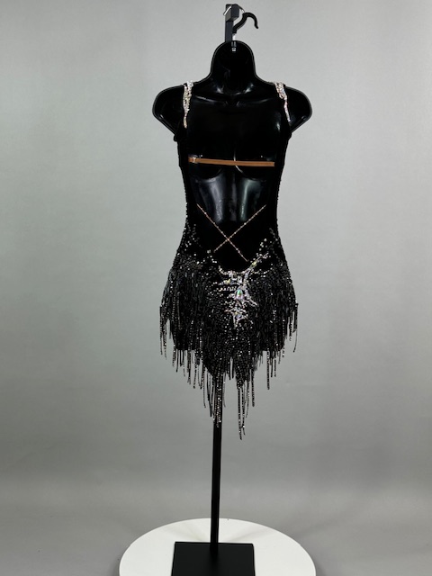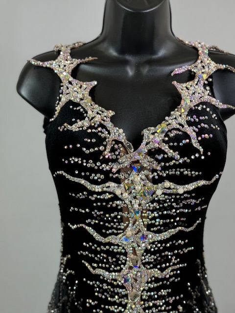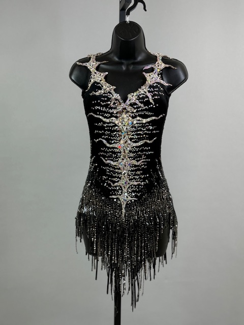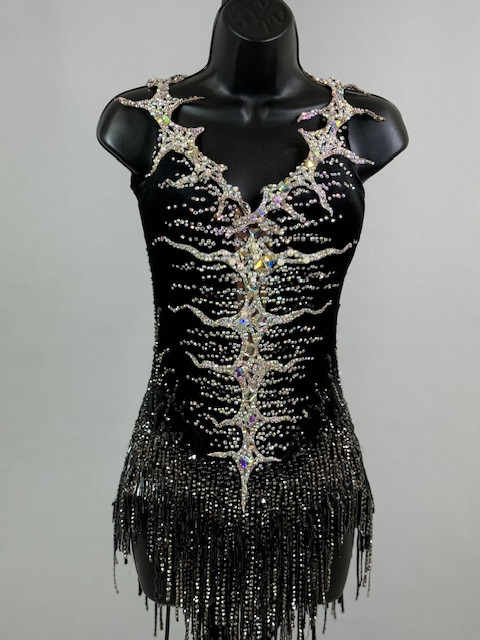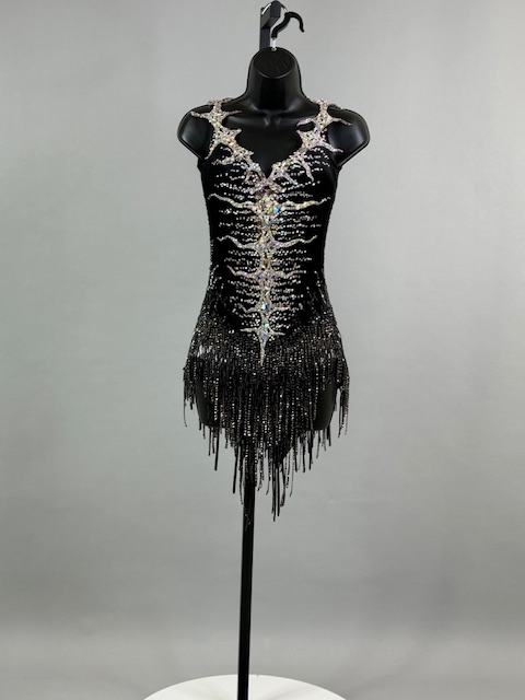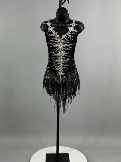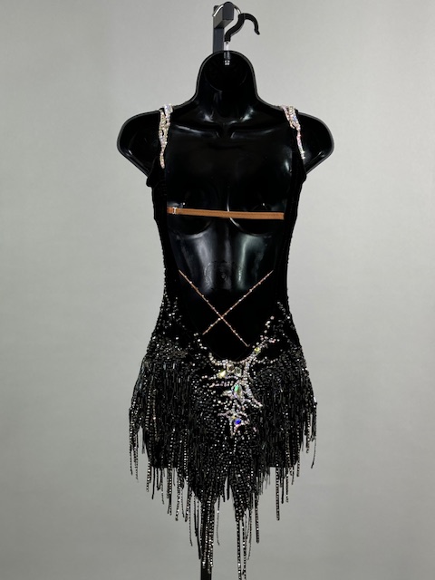 This is a beautiful black Rhythm/Latin dress! Best for Latin style. Trimmed with Austrian Crystals.