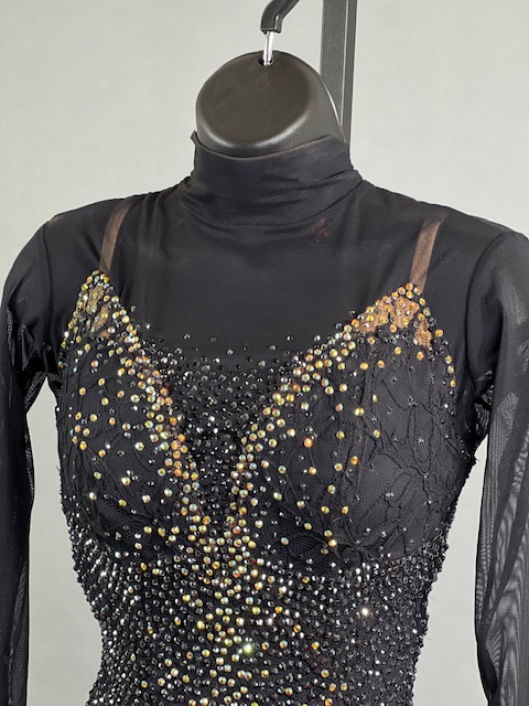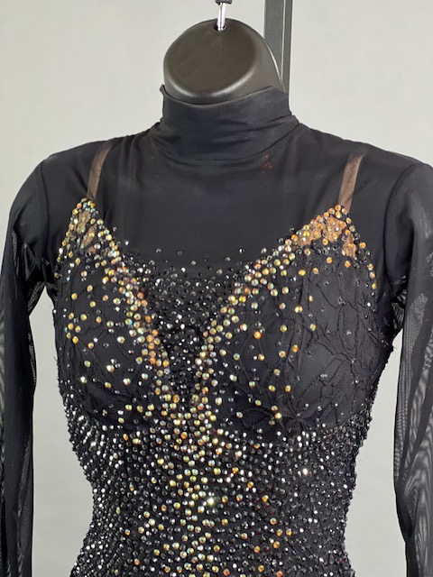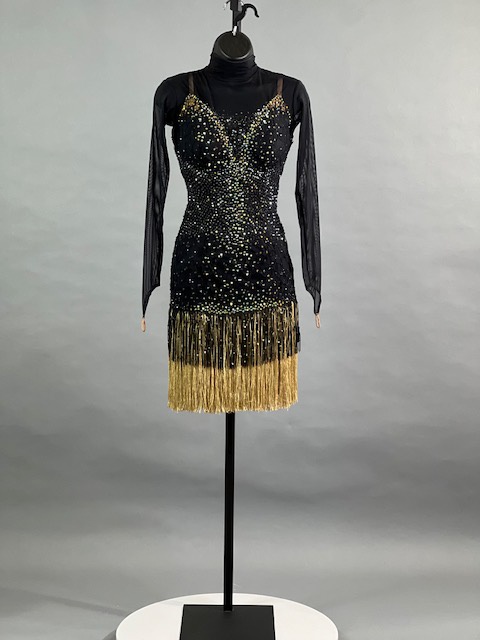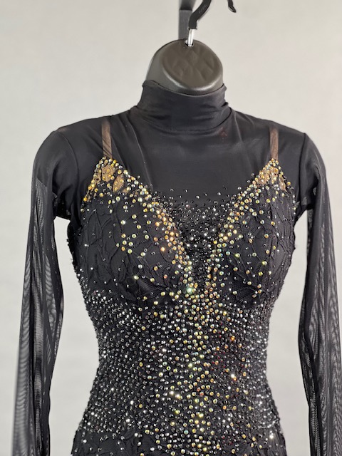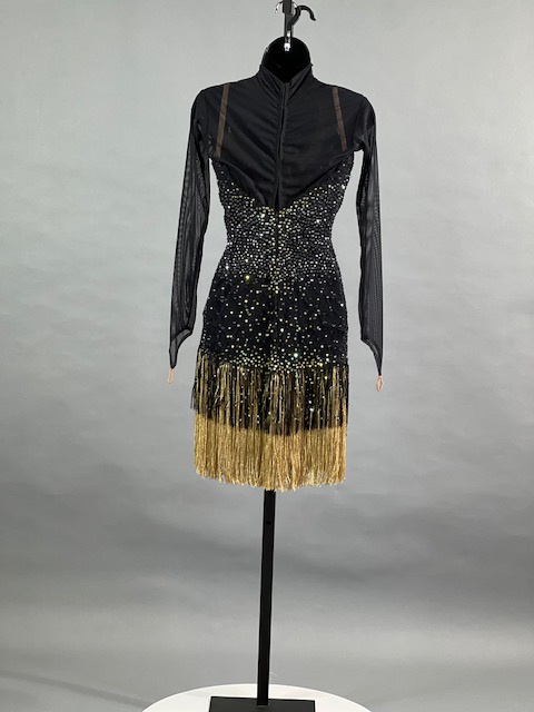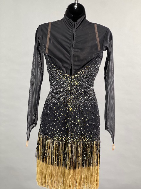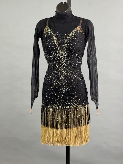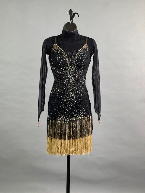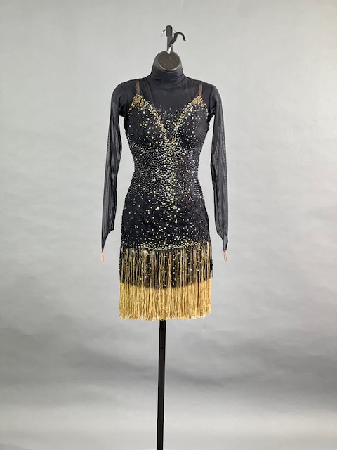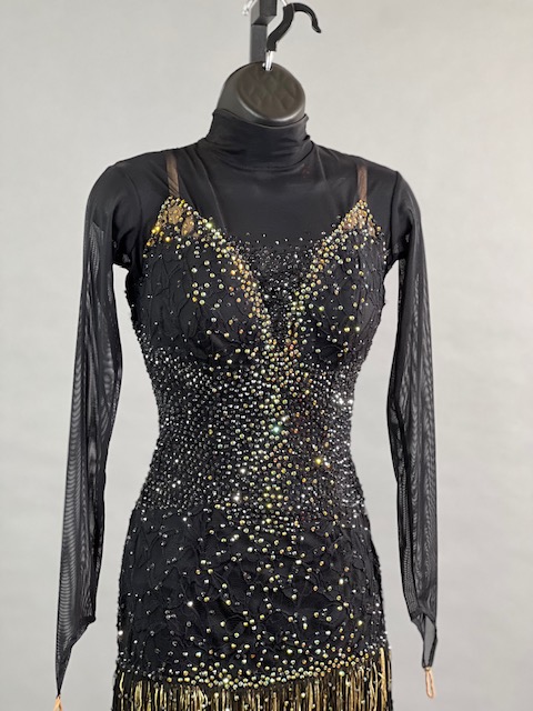 This is a beautiful black Rhythm/Latin Dress! Fringes moves amazing on the dance floor, a true beauty! Stoned with Austrian Crystals.
