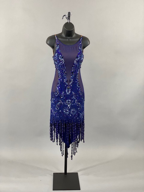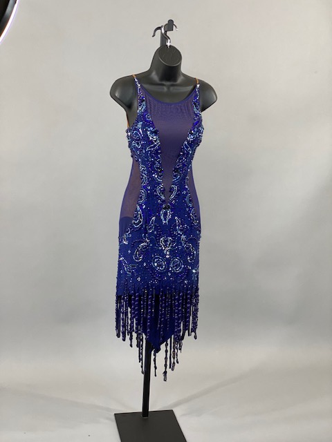 This blue beads dress is amazing! It’s very unique dress, an absolutely beauty! Beads creates a great effect on the dance floor. Dress designed by DORE Designs. This dress is stoned with Austrian Crystals.