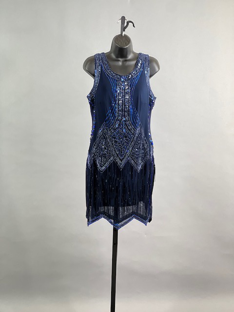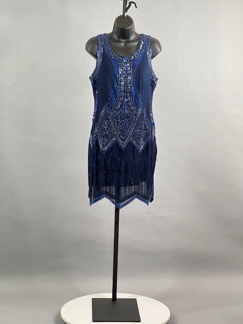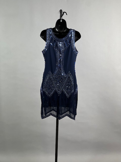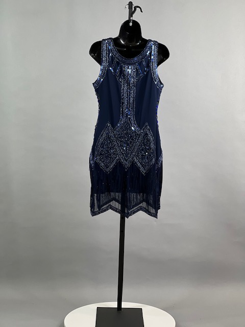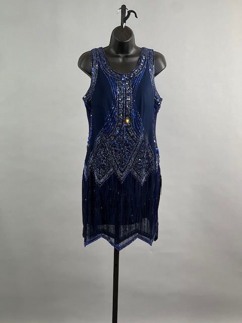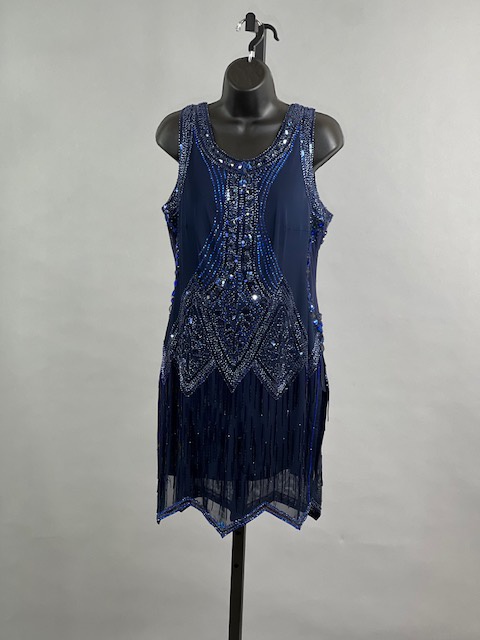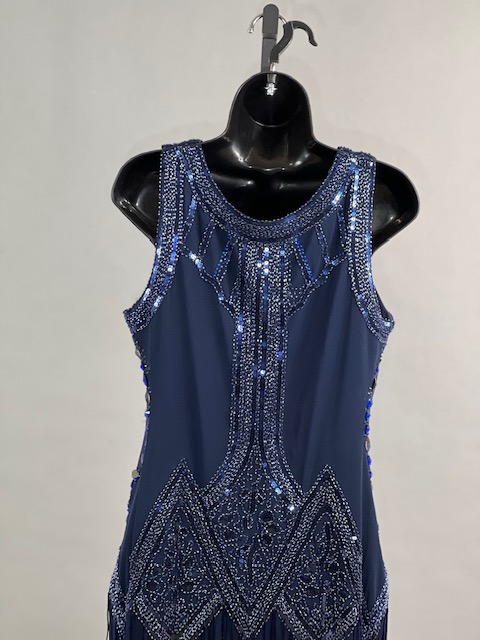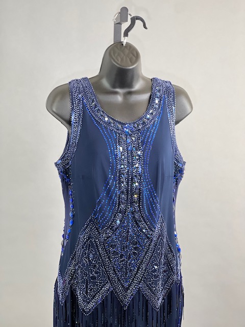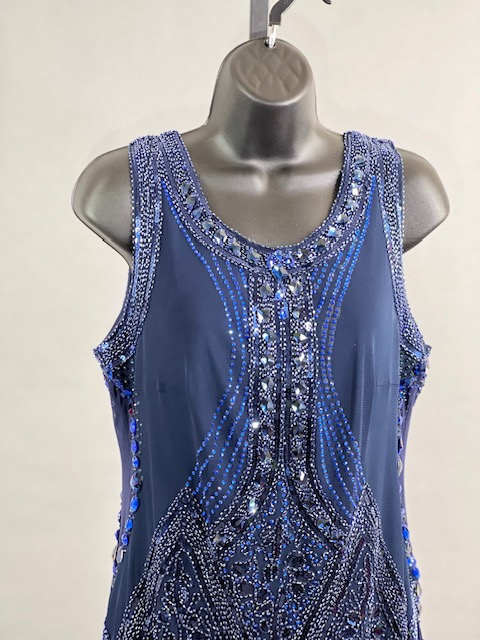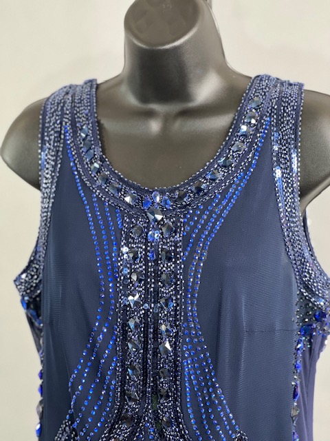 This is a beautiful dark blue Rhythm/Latin dress! Great for showcase or solo. Trimmed with Preciosa Crystals.