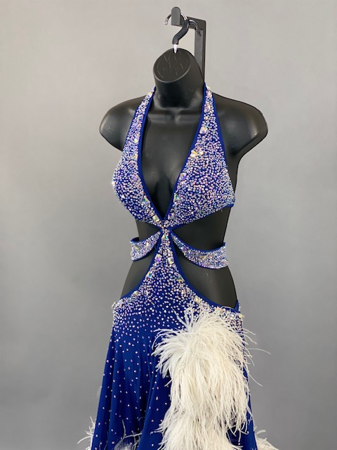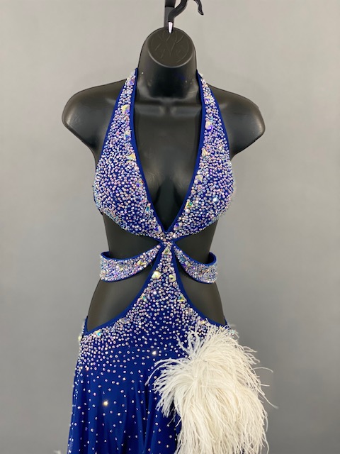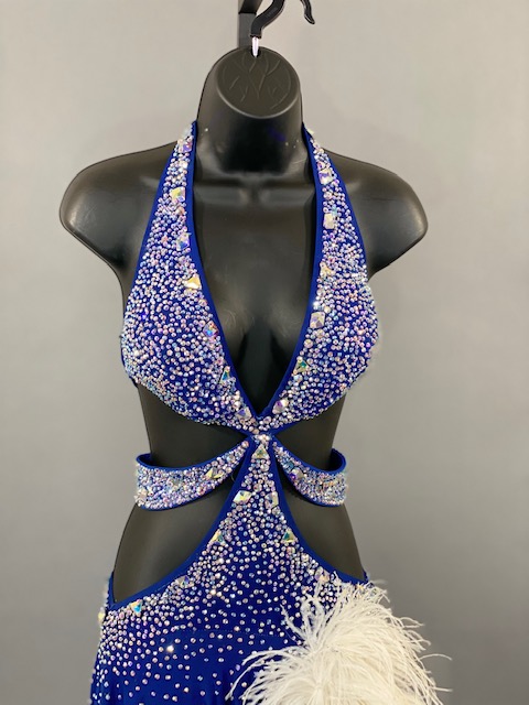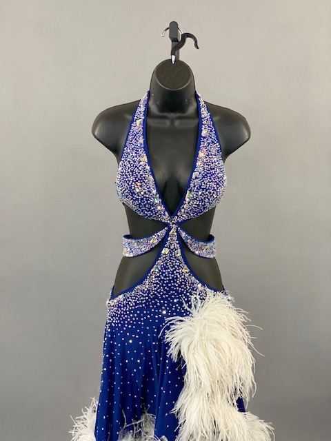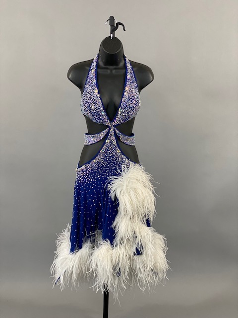Great rhythm/latin dress. Skirt creates a great effect on the dance floor. Dress designed by DORE Designs. This dress is stoned with Austrian Crystals.