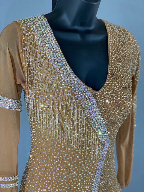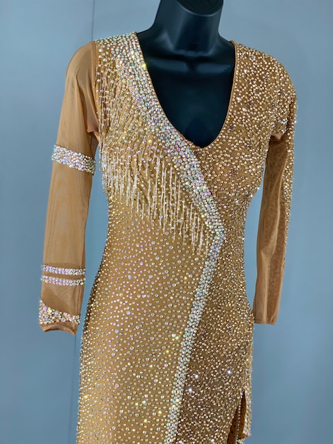 This is a beautiful Rhythm/ Latin dress! It’s simple stunning and moves amazing on dance floor!