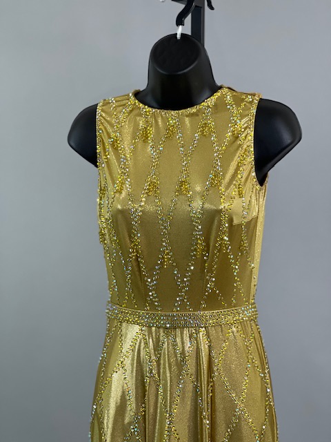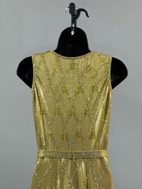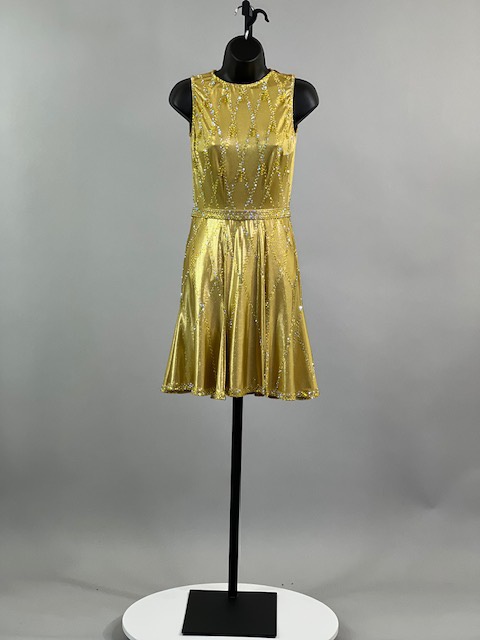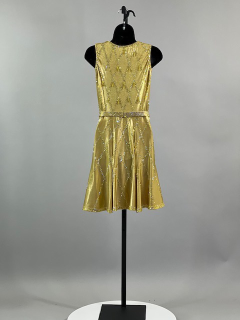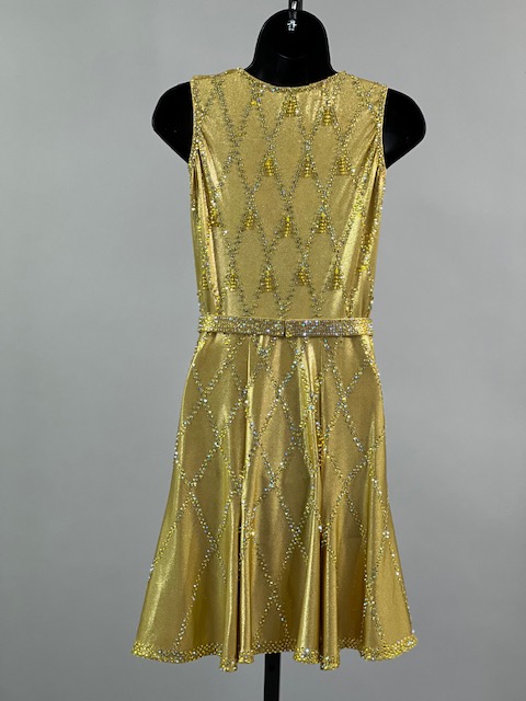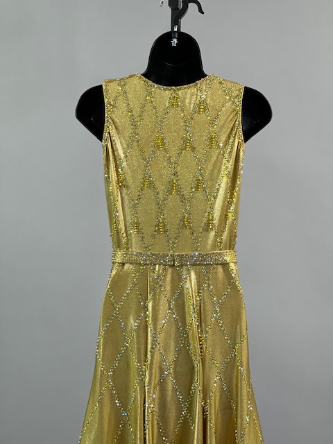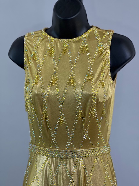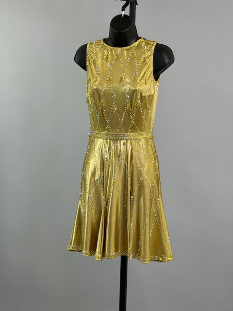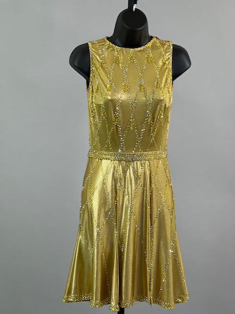 This is a beautiful gold Rhythm/Latin Dress designed by Sirius! It moves amazing on the dance floor, a true beauty! Trimmed with Austrian Crystals.