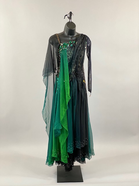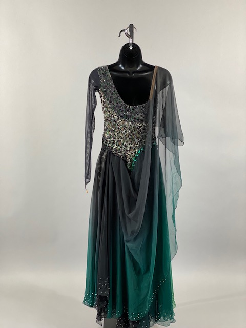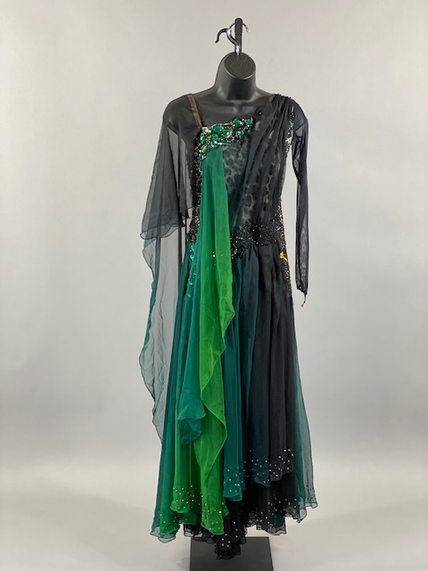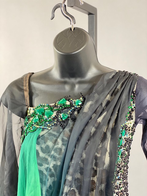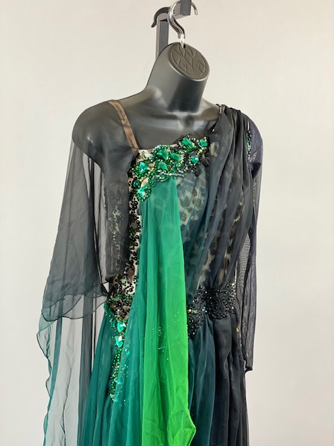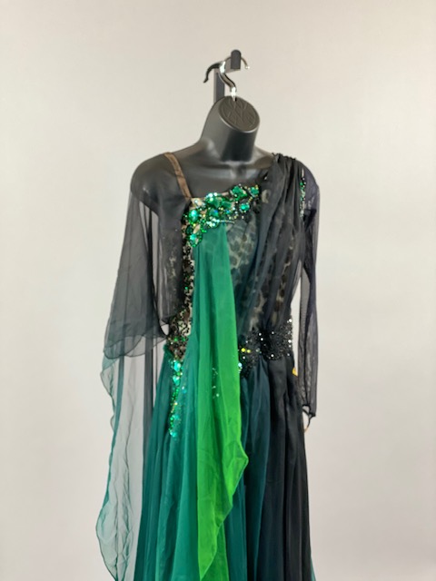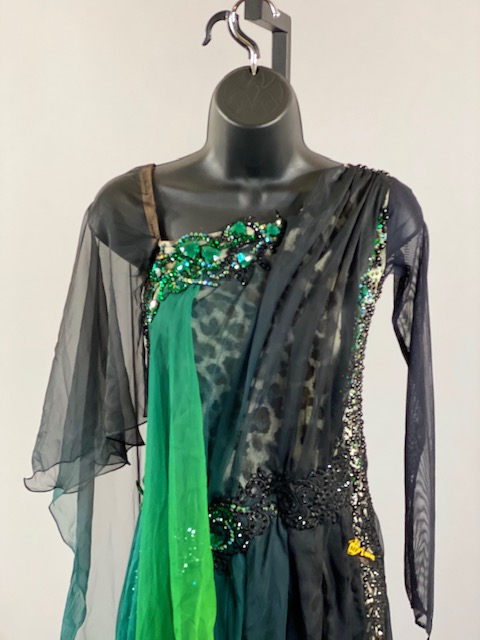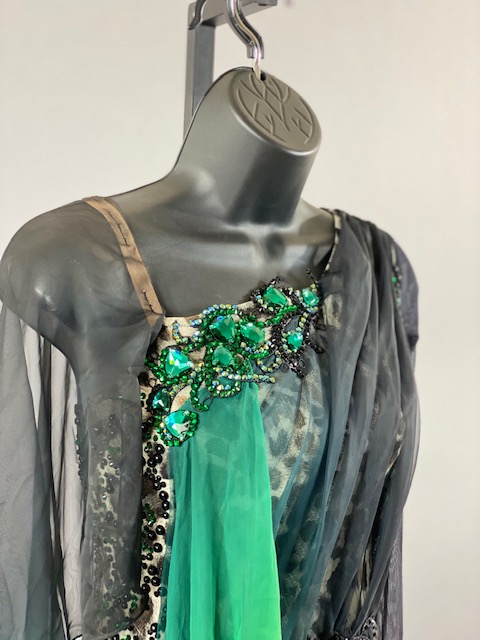 This beautiful black leopard with green stones smooth dress is a true beauty! Simply stunning! Great for your next competitions or showcase. Trimmed with Austrian Crystals.