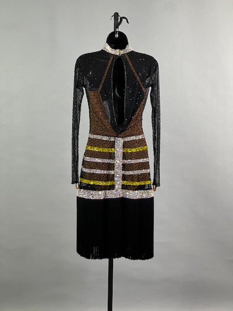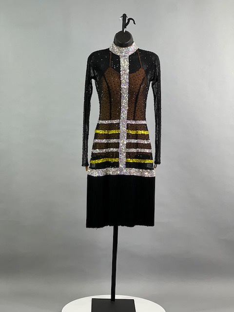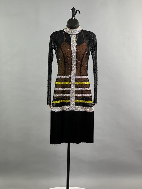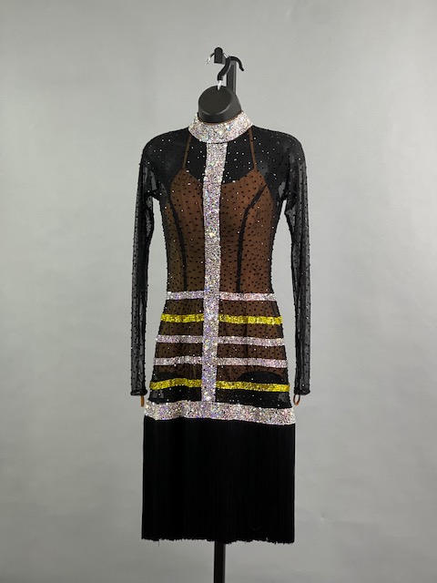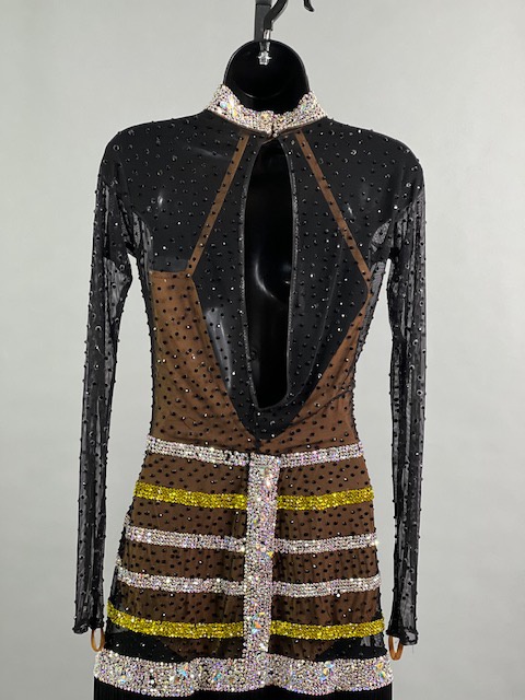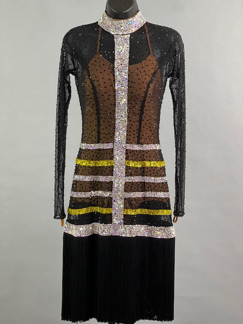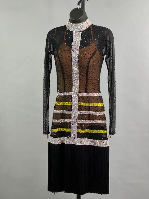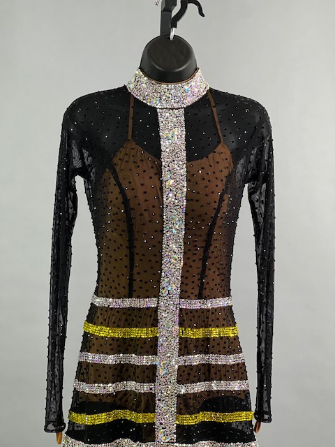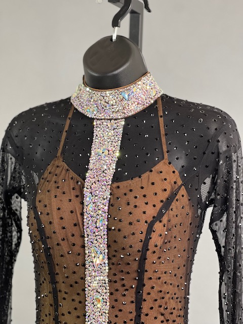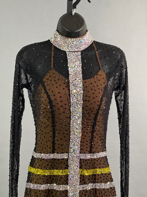 This is a beautiful black Rhythm/Latin Dress designed by Jordy! It moves amazing on the dance floor. Trimmed with Austrian Crystals.