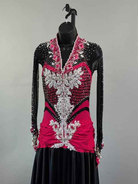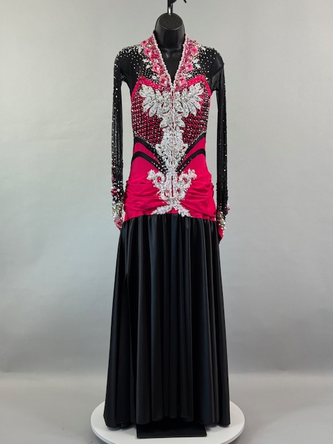 This is a beautiful pink and black smooth designed by Natasha! It looks amazing on the dance floor. Trimmed with Preciosa Crystals.