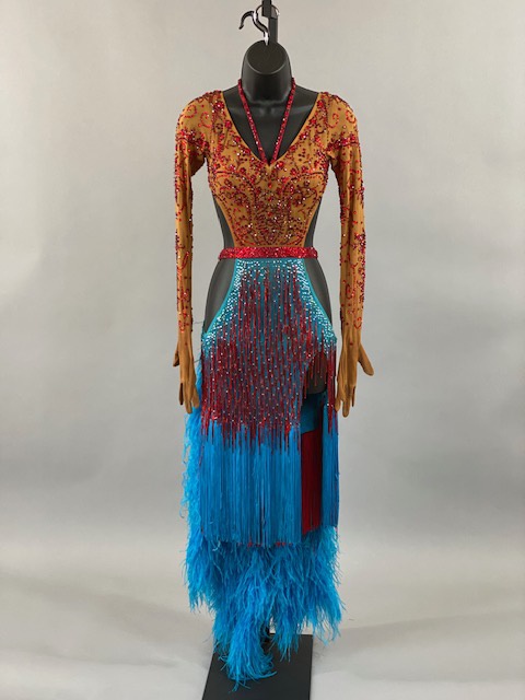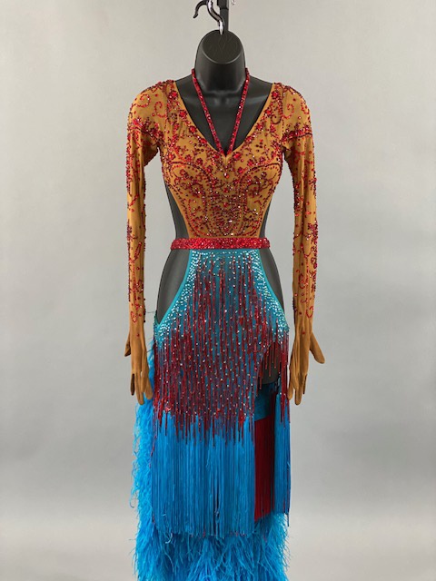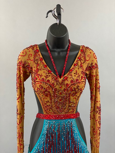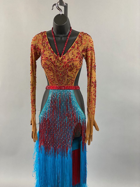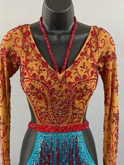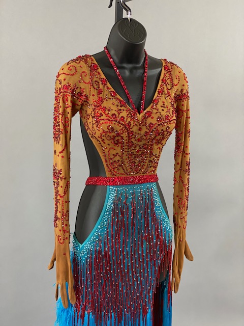 Beautiful Rhythm Latin/Rhythm Dress. Dress designed by DORE Designs. This dress is stoned with Austrian Crystals.