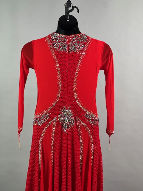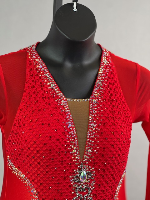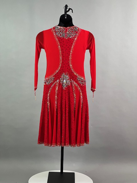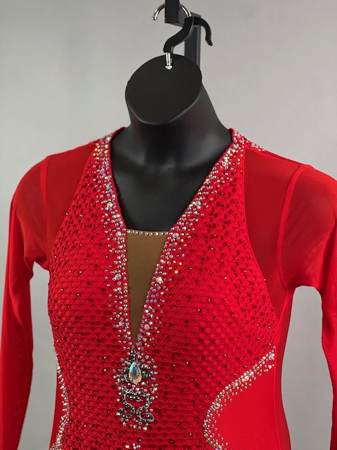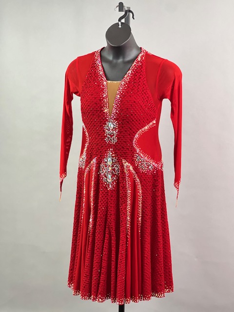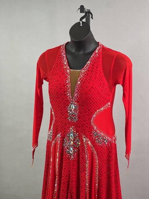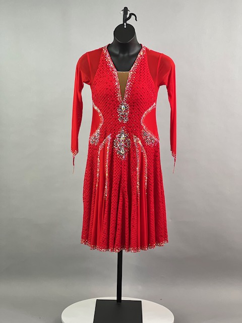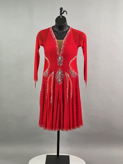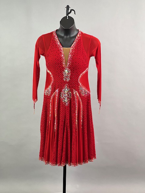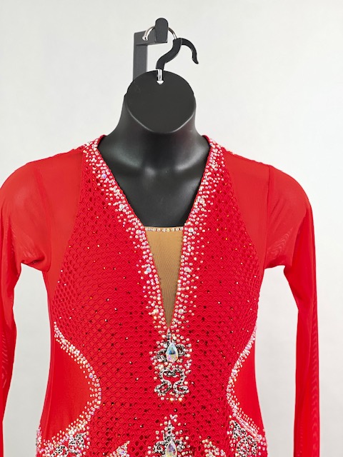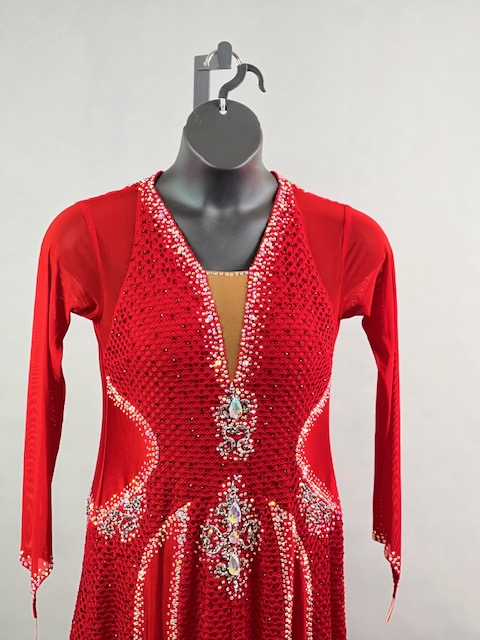 This is a beautiful red Rhythm/Latin Dress! Skirt moves amazing on the dance floor. Trimmed with Preciosa Crystals.
