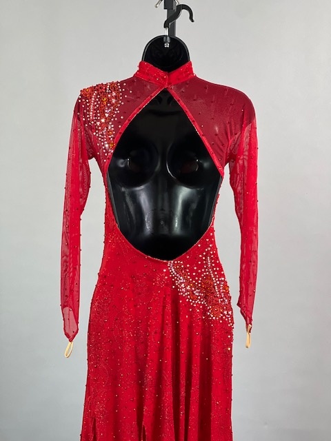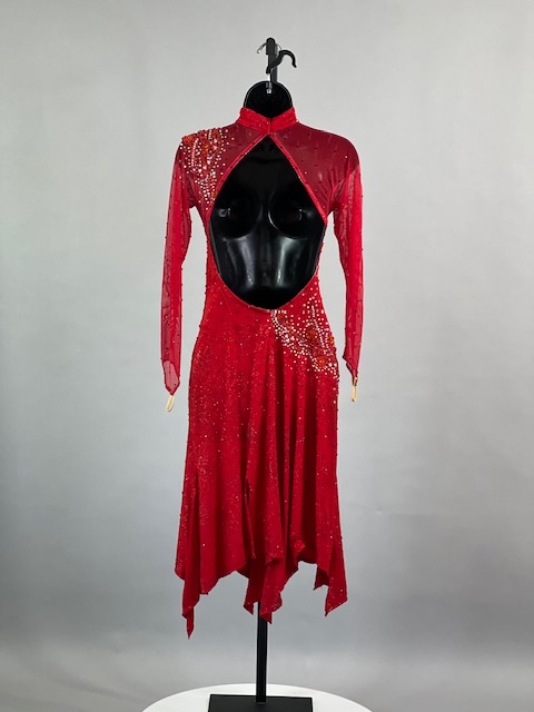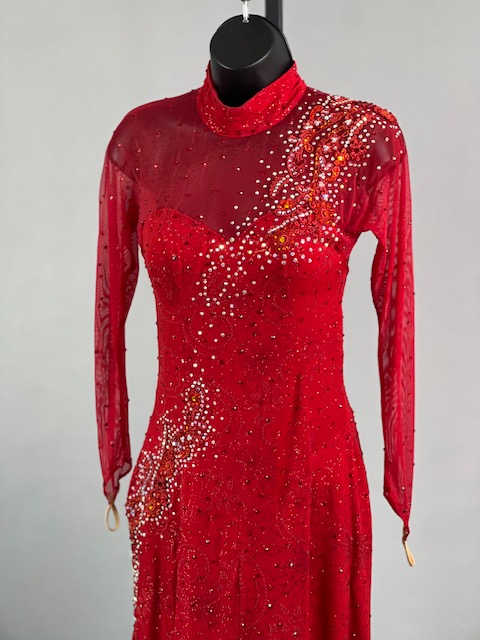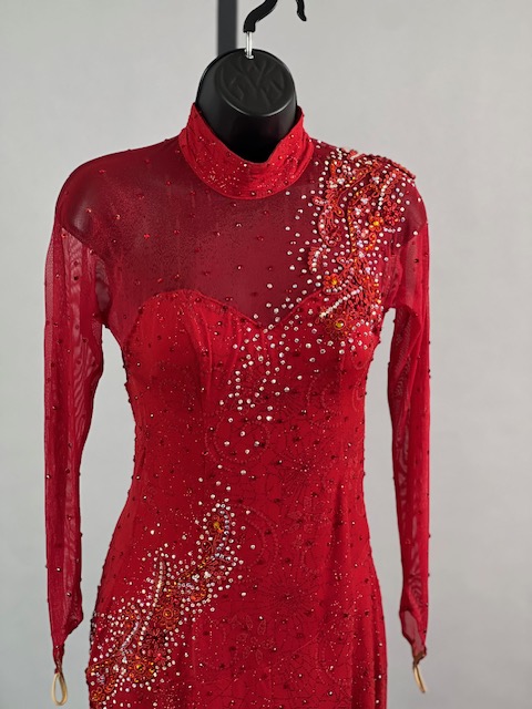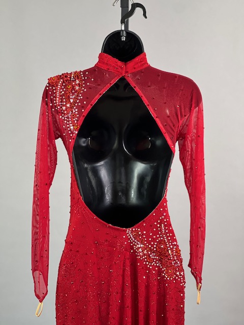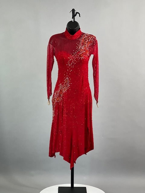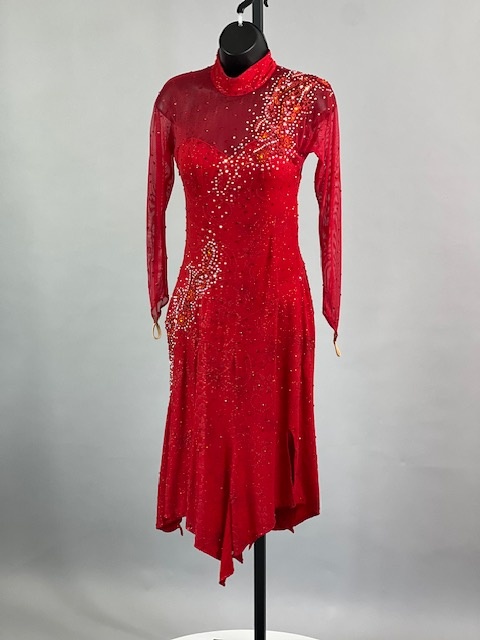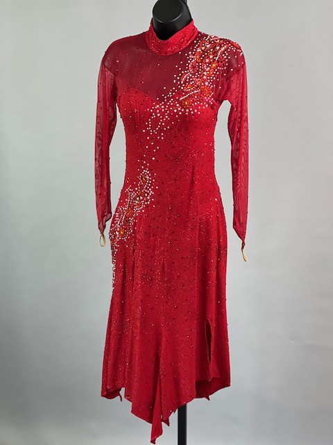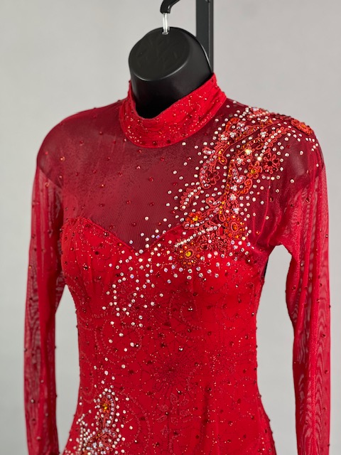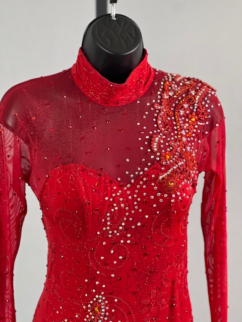This is a beautiful red Rhythm/Latin dress! Style creates a great effect on the dance floor. Trimmed with Austrian Crystals.