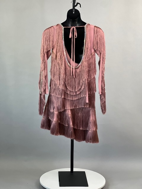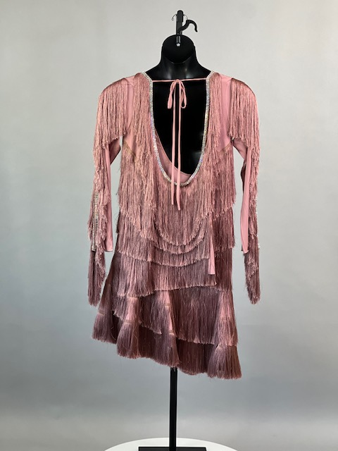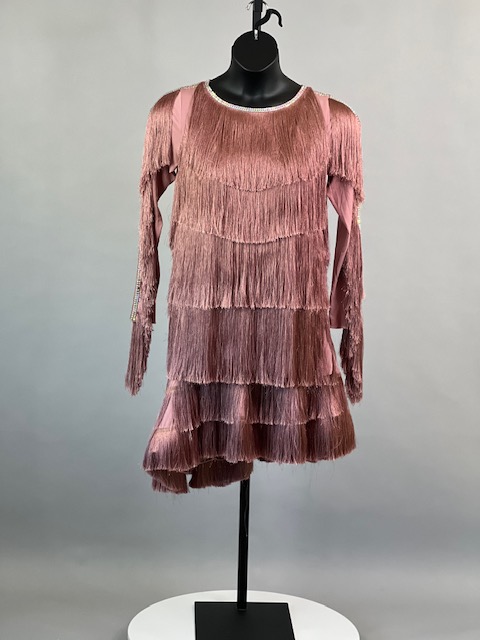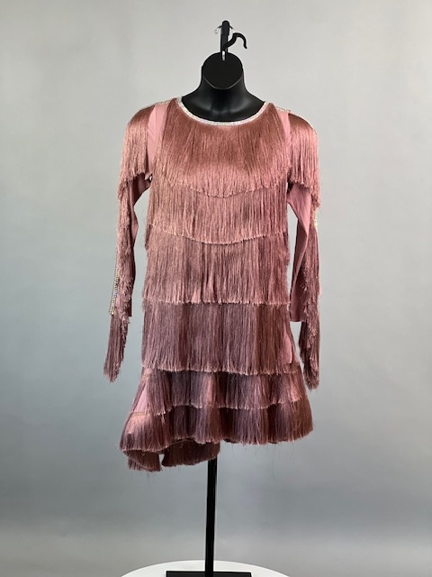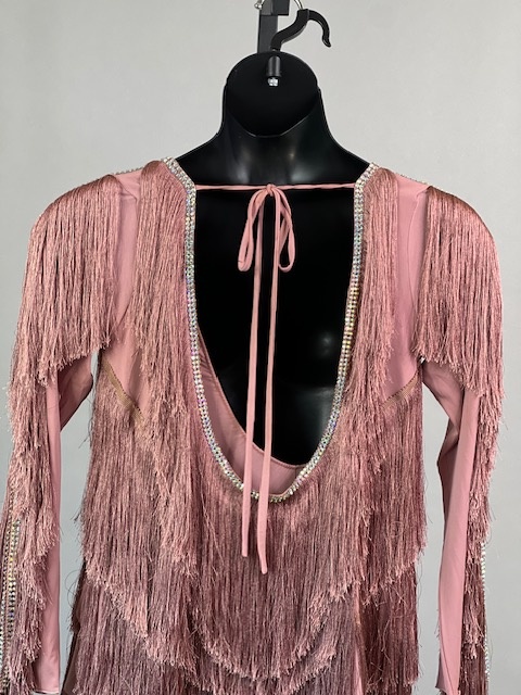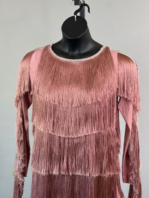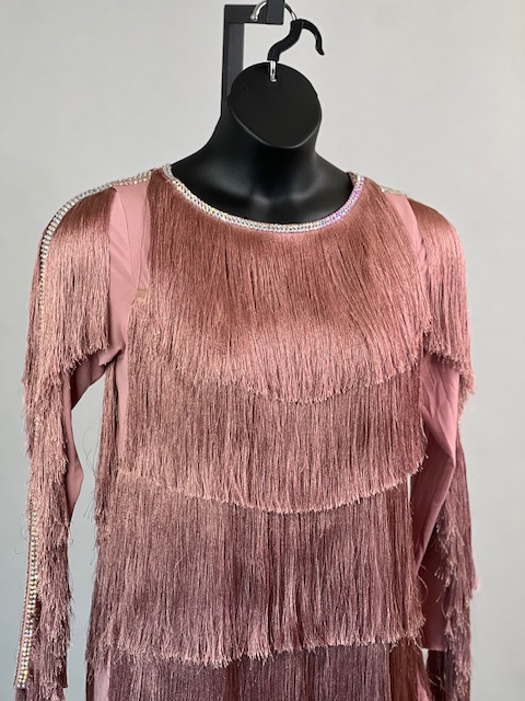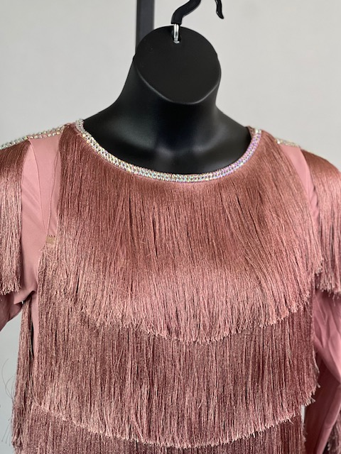 This is a beautiful dusty rose fringes Rhythm/Latin dress! Style creates a great effect on the dance floor. Trimmed with Austrian Crystals.