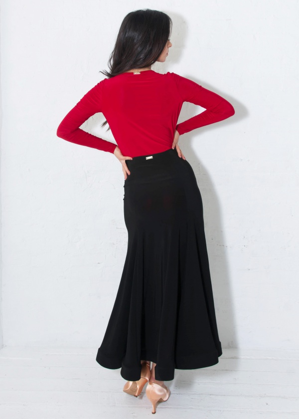 4 panels of luxury poly/spandex and a comfortable wide elastic waistband, this skirt is easy to pair with almost any Miari top or Miari bodysuit. Horsehair at the hem and a slit on the left side defines this skirt as both elegant and sexy. Only in black.