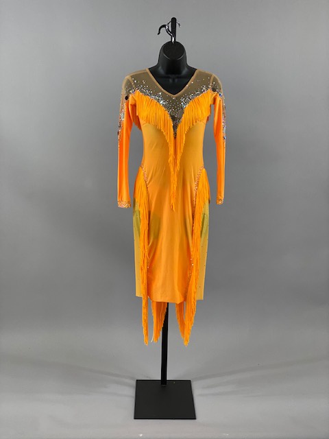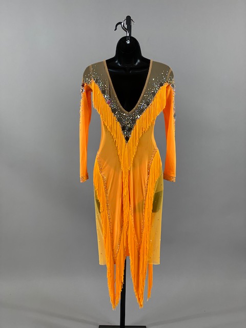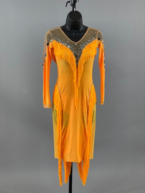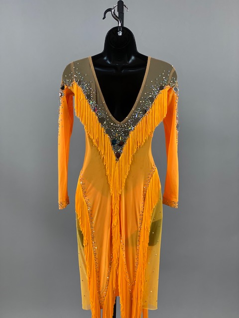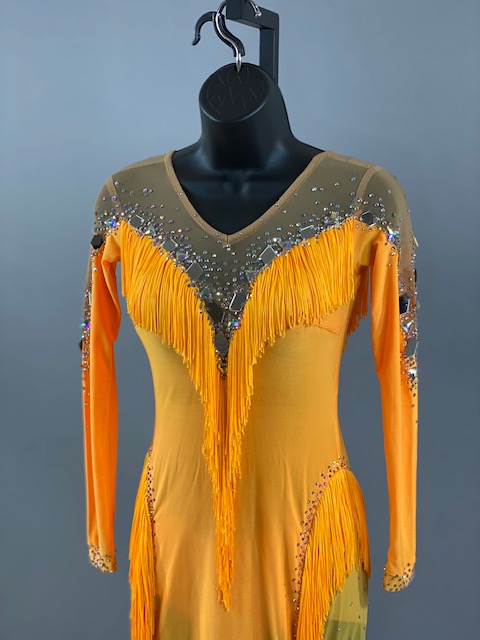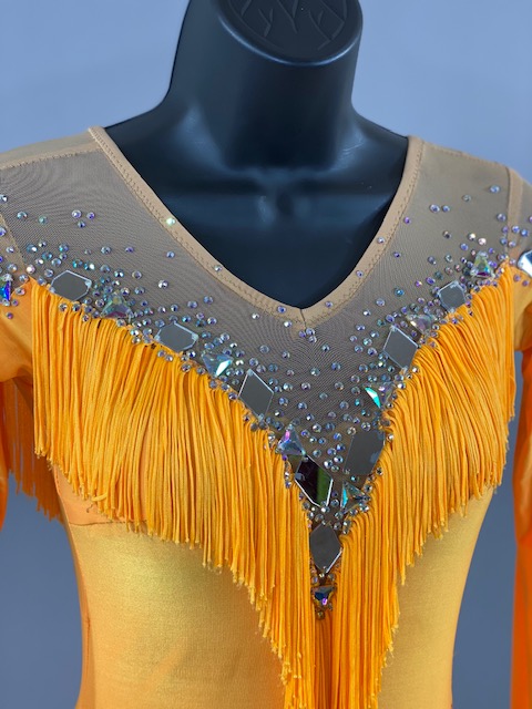 This yellow rhythm/latin dress is very unique, fringes creates a great effect on the dance floor. This dress is stoned with Austrian & Preciosa Crystals.